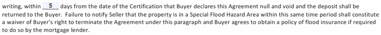 Flood: I always include 10 days for the buyer to obtain a Flood certification.