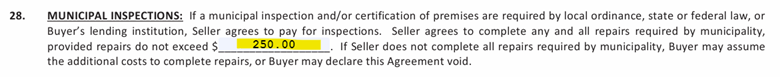 Municipal Inspections: If the municipality requires inspections this sets the limit that the seller would be responsible for. The seller is typically responsible for these fees and repairs up to the limit listed.